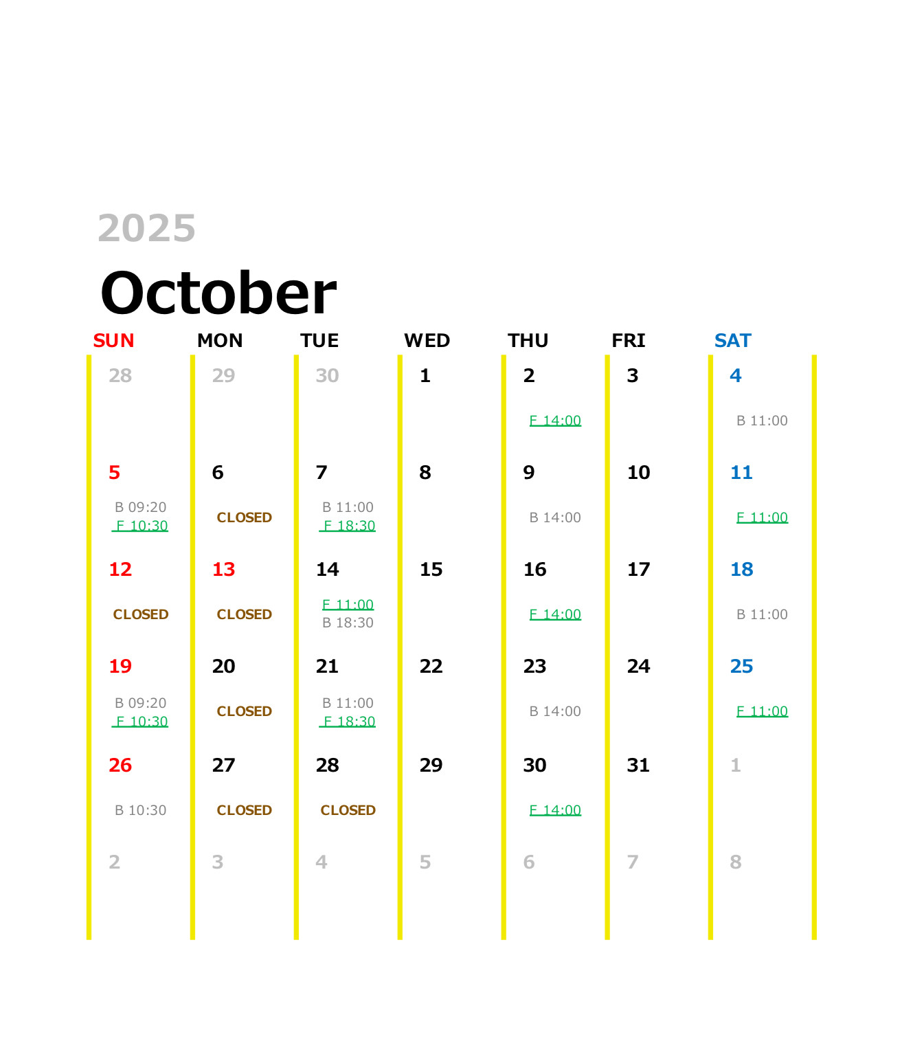 ●プライベート及びデュエットセッションのご新規様の受付は10月はキャンペーン期間中のため10月の一ヶ月間休止いたします